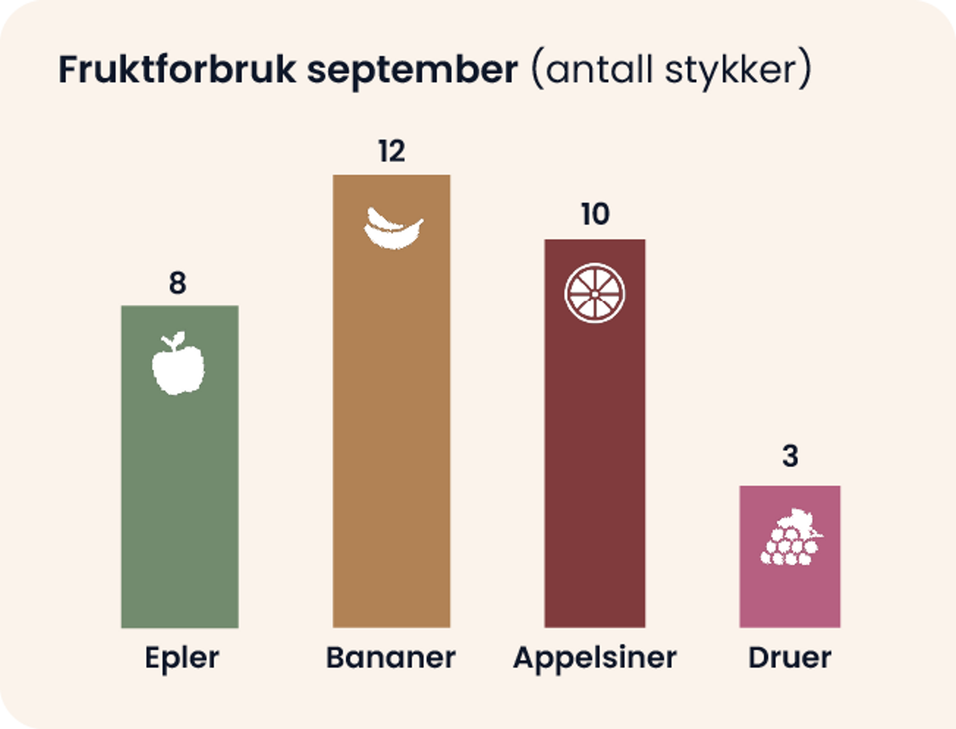 Ofte bruker vi grafiske elementer som diagrammer, navneskilt og tekster i våre videoer. Disse må ha god kontrast mot bakgrunnen for at personer med nedsatt syn skal kunne få tilgang til informasjonen. Når vi bruker diagrammer, er det også viktig at forskjellen mellom de ulike stolpene ikke kun er basert på farge, da personer med nedsatt fargesyn kan ha problemer med å oppfatte hva som er hva. For å tydeliggjøre stolpene kan ulike mønstre brukes.